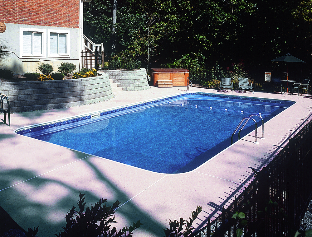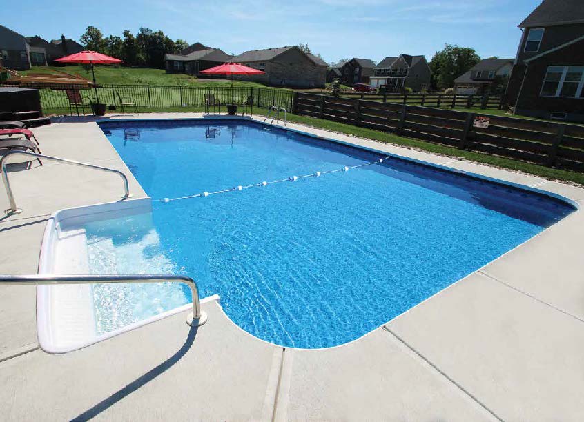 Cette piscine aux coins à rayon de 2 pi, avec ses lignes classiques et sa forme rectangulaire élégante, est un hommage à l'art de vivre et vous invitera à des heures interminables de baignade libre, de bains de soleil luxueux et de réceptions somptueuses. Elle présente des coins arrondis de 2 pieds et est la seule piscine équipée de nos escaliers à trois options de largeur. Des escaliers traditionnels de 6 ou 8 pieds de large sont disponibles, ainsi que des escaliers intégrés extra larges de 12 pieds centrés pour se prélasser.